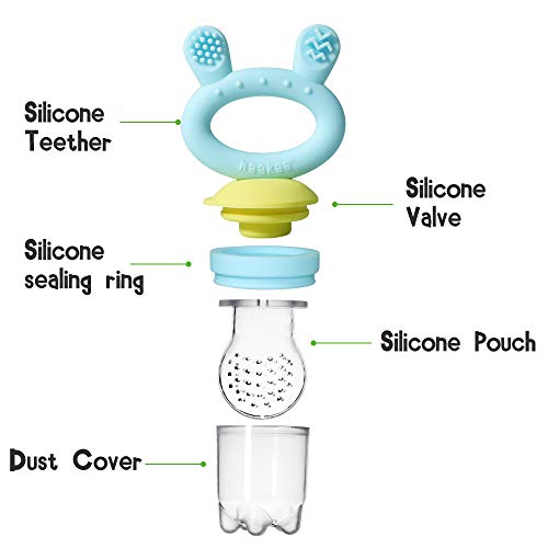 - Silicone baby teether:This food teether doubles as a teething toy! Simply turn the feeder upside down to let your child chew and suck on a 100% food grade silicone teether, Soothes teething pain and keeps your busy little entertained