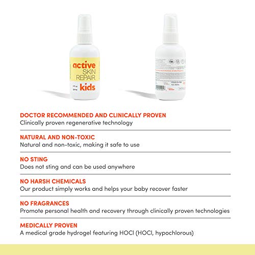 - PEDIATRICIAN RECOMMENDED & CLINICALLY PROVEN KIDS SKIN SPRAY: The technology used in ACTIVE Skin Repair's Kids Spray is the same safe & gentle molecule used in hospitals and households worldwide.