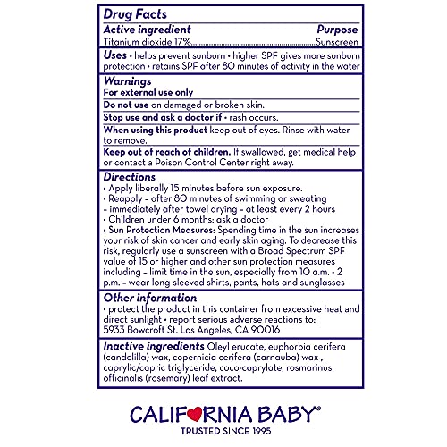 California Baby Super Sensitive Broad Spectrum SPF 30+ Sunscreen Stick