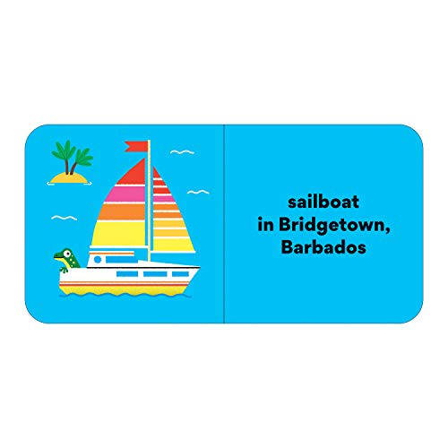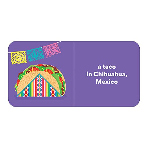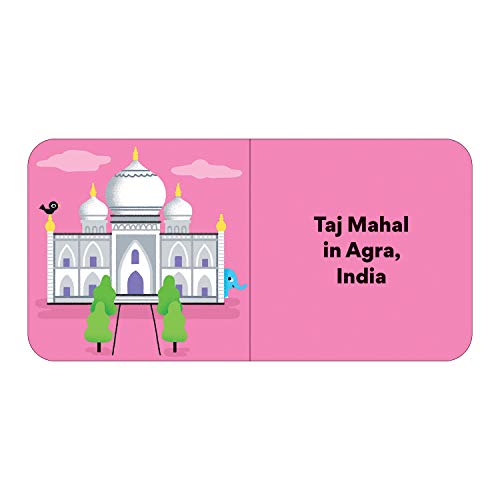 - 4 board books: Landmarks, Food, Vehicles, and Animals, Food: Germany, Mexico, Japan, Italy, Vehicles: England, United States of America, Barbados, Thailand, Landmarks: France, Egypt, India, United States of America, Animals: Madagascar, Iceland, Galápagos, Australia, 8 chunky pages per book, 32 pages total