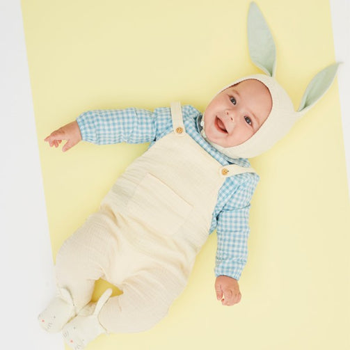 Babies will look ultra adorable wearing the gorgeous knitted organic cotton bonnet with cute floppy bunny ears. Beautifully presented in a pretty drawstring bag, it makes a lovely gift for Easter.