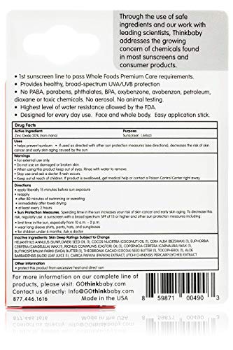 Details: Nontoxic, non-nano zinc oxide, mineral-based sunscreen, free of biologically harmful chemicals. Created with Whole Foods Premium Care Ingredients. Highest level of water resistance and broad-spectrum coverage allowed by the FDA. Applies and absorbs easily with non-oily feel. Oval shaped stick is convenient to carry in your front pocket, purse or diaper bag. Easy application for on-the-go athletes, adults and babies. Sunscreen produced in the USA.