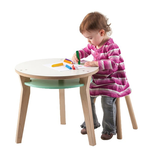 The Three Pears Bobbin Triple Play Center changes from a baby play center to a toddler activity table to a kid’s table. 360 degree rotation gives your little one full access to toys while encouraging movement and interaction with surroundings, while 5 adjustable height settings ensure an ideal fit as your baby grows. The Bobbin sits firmly on the floor and the snug leather seat provides added comfort and support for babies beginning to sit up.