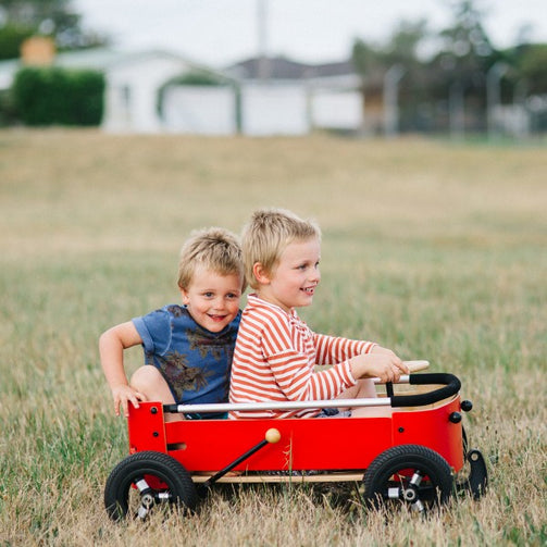 The Wishbone Wagon is a brand new classic. With a low center of gravity, air-filled tires and three handle positions, it’s perfect for both solo and group play.