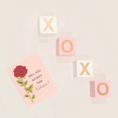 Just in time for Valentine’s Day, this adorable set features two X’s and two O’s with options of light pink or black.